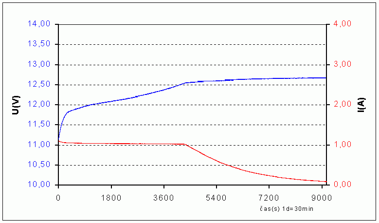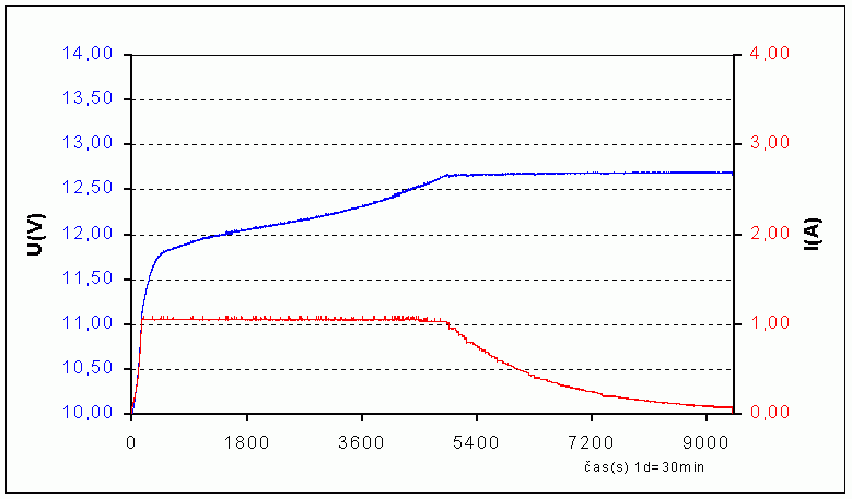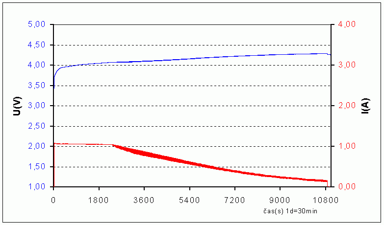 Poznámka: Graf končí při proudu cca. 80mA jako u ost. nabíječů automaticky.