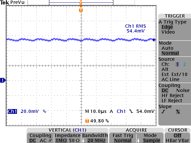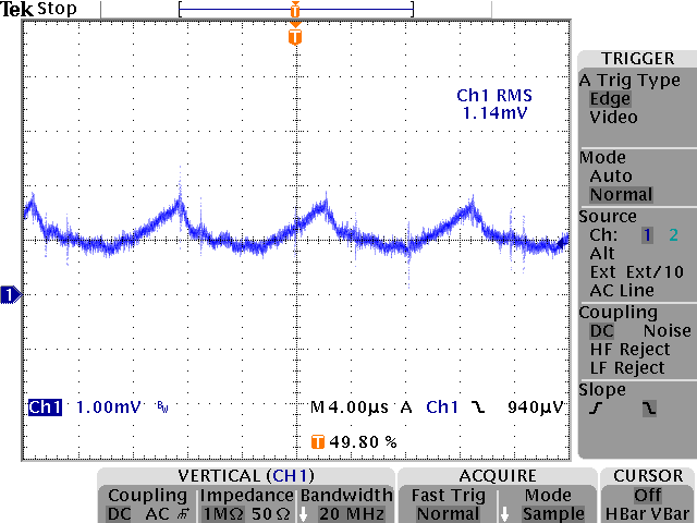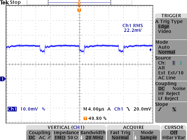vidět malé zvlnění. Vzniká při rozdílu vstup-výstup nabíječe cca. 0,6-1V